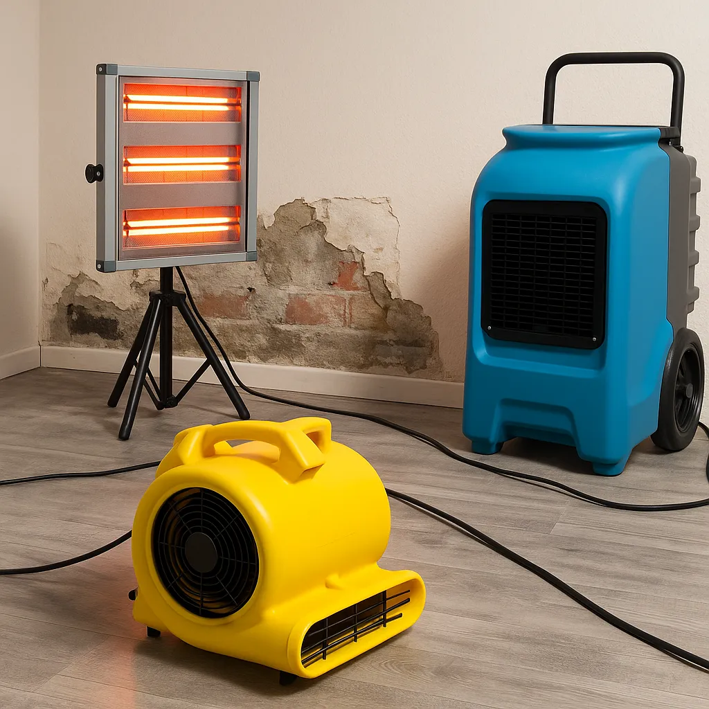 In der Praxis werden häufig Luftentfeuchter mit Infrarottrocknung oder Dämmschichttrocknung kombiniert, um eine effiziente und vollständige Austrocknung zu gewährleisten.