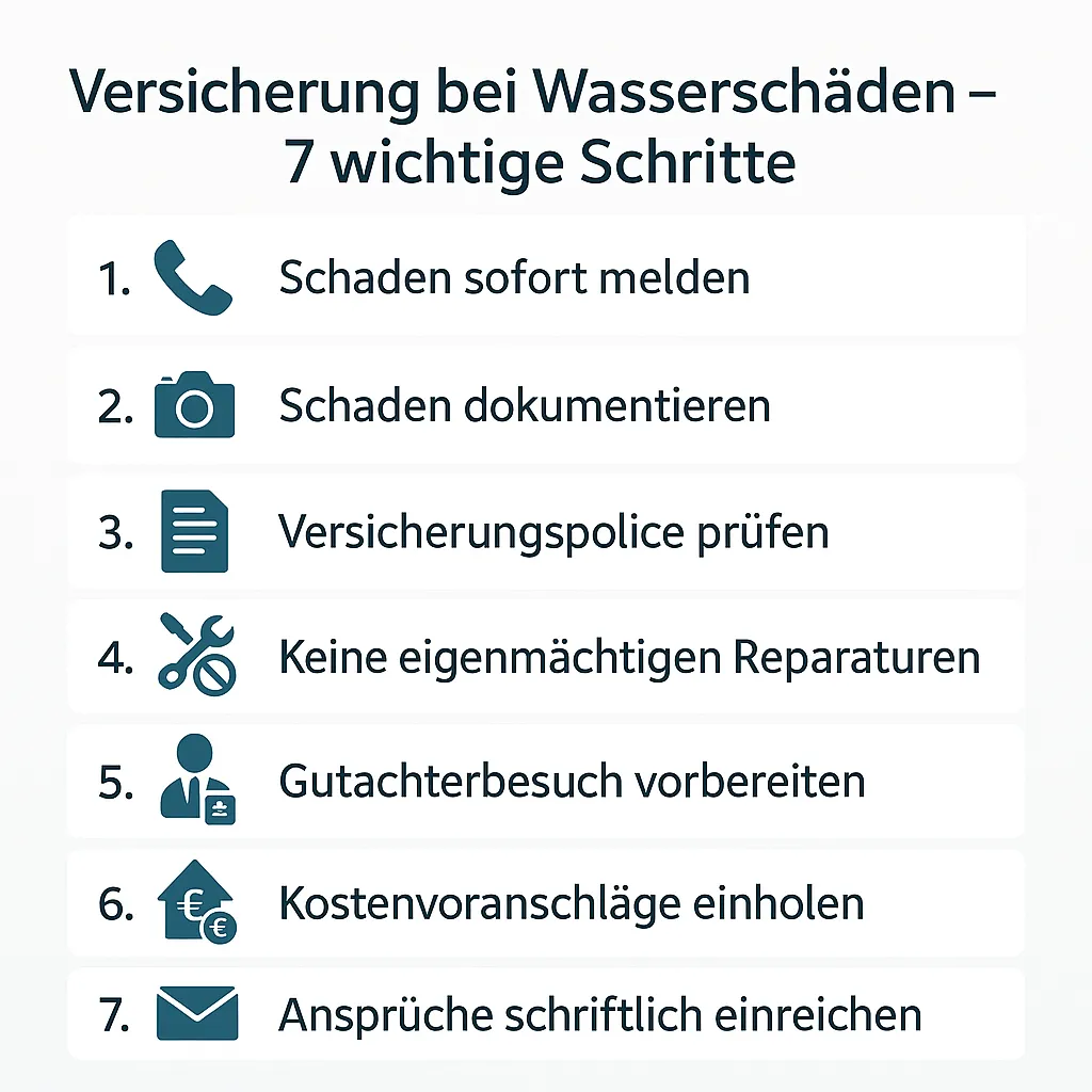 Oft verlangt die Versicherung mehrere Kostenvoranschläge von Fachfirmen für Trocknung oder Sanierung. Diese Angebote beschleunigen die Entscheidung über die Regulierung.